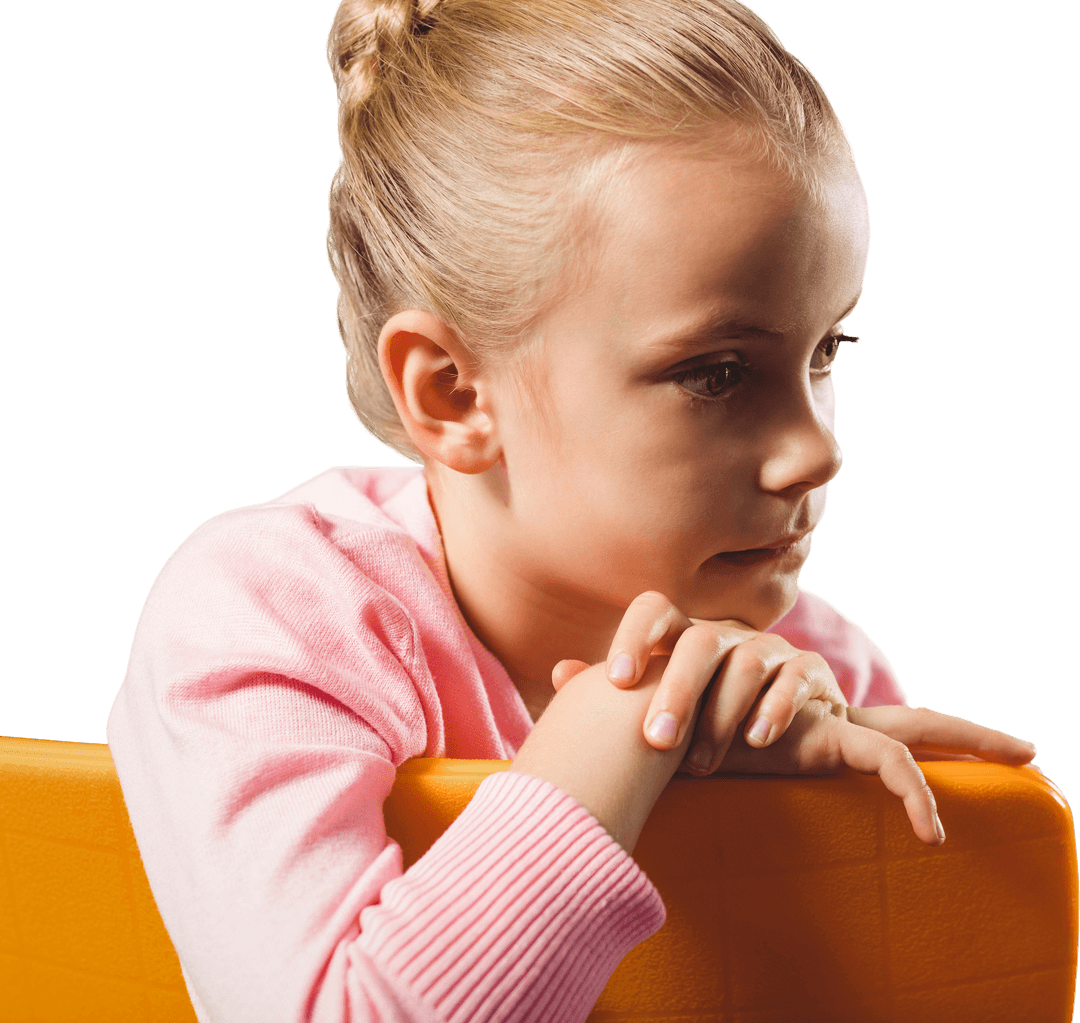 - Thoughtful Girl in Pink Shirt on Transparent Background