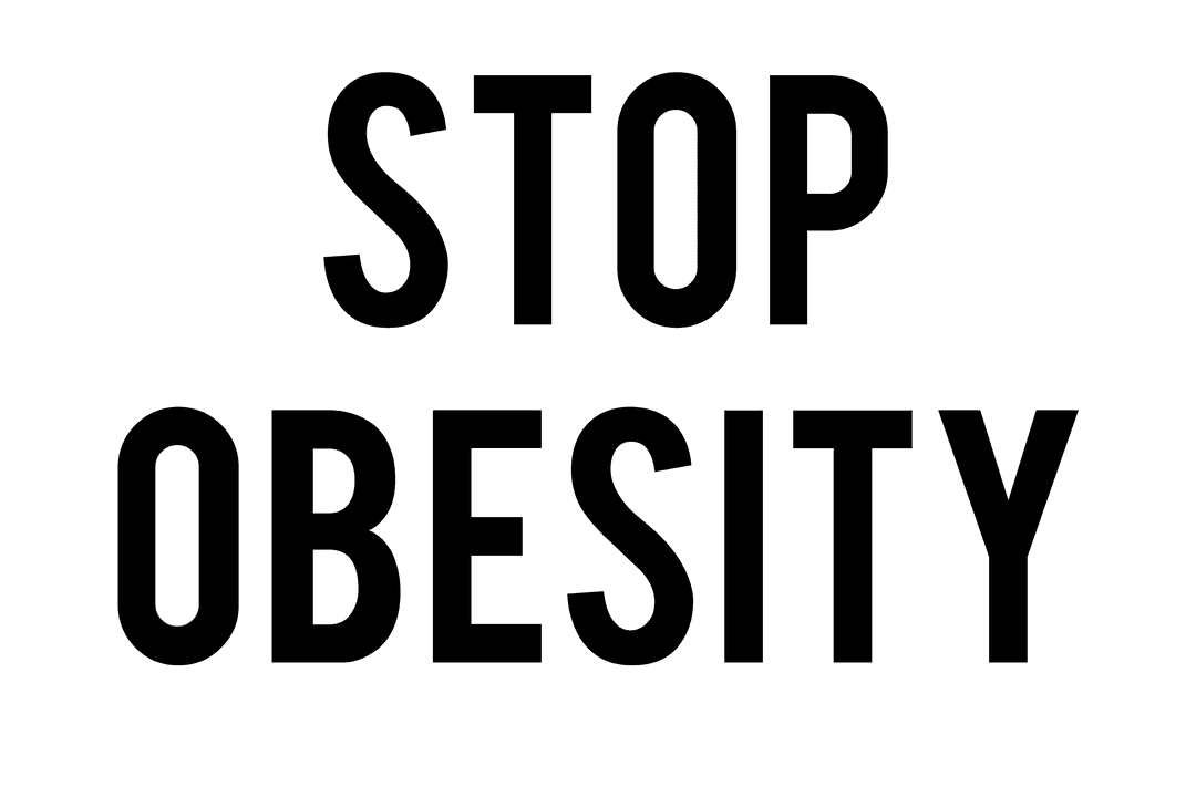 Transparency advocating stop obesity message in bold font conveys health consciousness and lifestyle awareness. Suitable for promotional marketing, health campaigns, or motivational social media content.