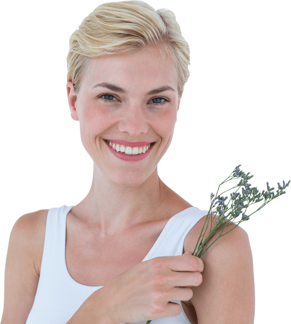 Transparent Background Female Holding Small Flowers Smiling PNG
