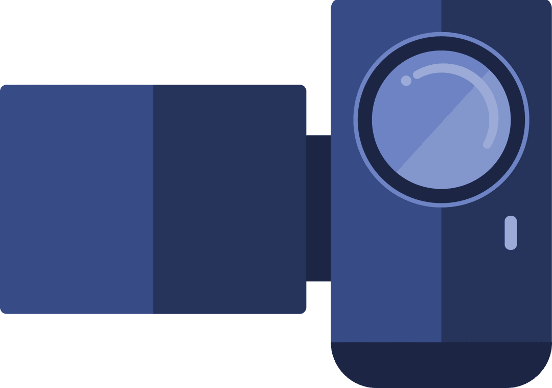 This digital camera illustration features a navy blue design on a transparent background. Ideal for graphics editors, teaching tools, technology apps, and visual projects focusing on filming or video recording.