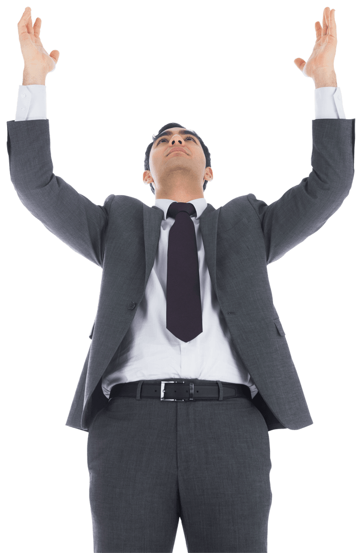 Transparent Businessman Raising Arms in Suit Expressing Victory PNG