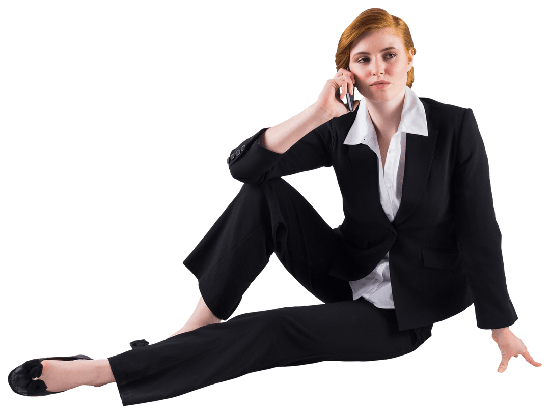 Transparent Businesswoman Sitting and Talking on Mobile PNG