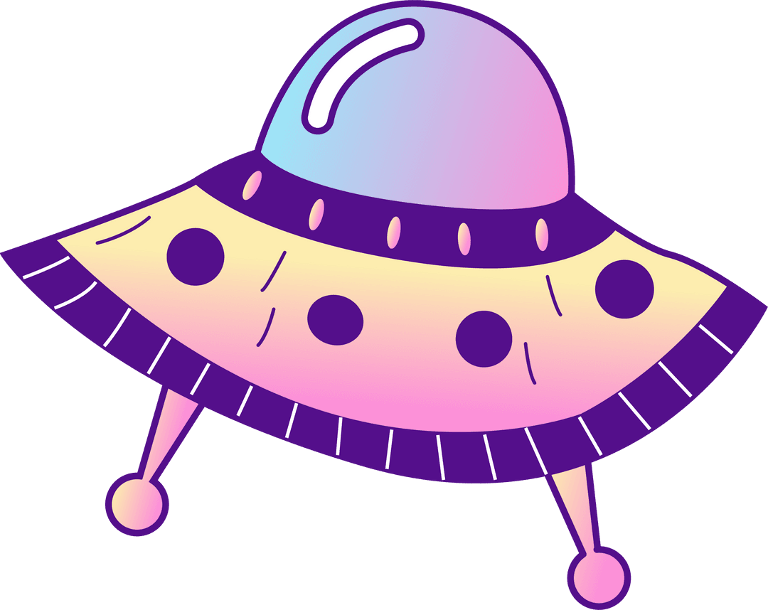 A cartoon UFO illustrated with a vibrant paste gradient dome and cheerful pastel colors perfect for sci-fi themes, fantasy projects, or technology-related concepts. Ideal for use in digital designs, sci-fi content, or educational material about space and innovation, appealing to a playful and imaginative audience.