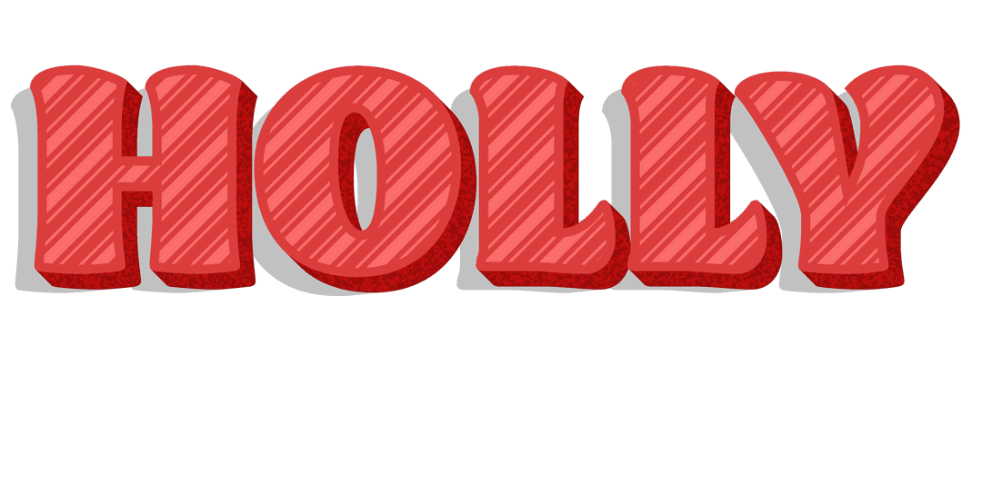 Festive and vibrant, this transparent vector text 'HOLLY' in red with stripes offers a charming and joyful design. Suitable for Christmas cards, holiday advertisements, seasonal event invitations, and festive graphic projects, prominently embedding the joyful 'HOLLY' spirit into your creations!