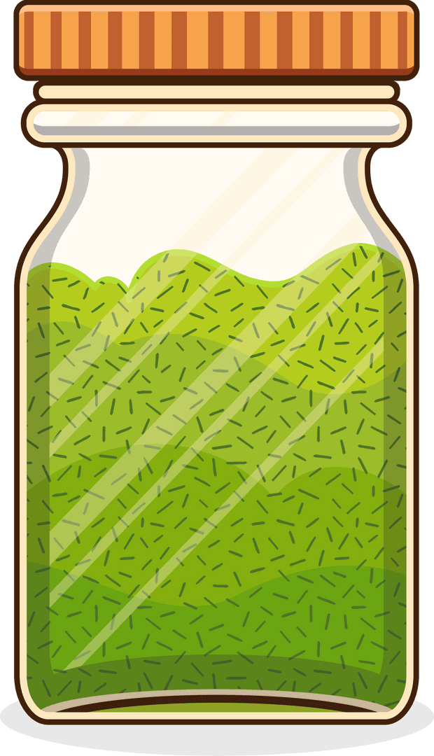 Illustration showing a sleek and transparent jar filled with green powder, ideal for eco-friendly and minimalist design themes. Perfect for advertisement or design projects related to storage solutions, green living, organic products, or health foods. Suitable for websites and platforms that highlight natural and sustainable lifestyles.