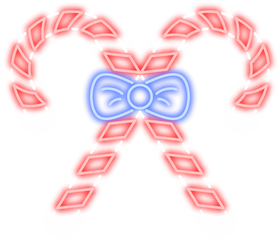 This image shows a pair of vibrant red and white candy canes with a neon blue ribbon, designed digitally on a transparent background. It exudes a festive holiday atmosphere, making it perfect for Christmas-themed projects. Use it for greeting card designs, holiday decorations, and seasonal marketing materials to capture a bright and playful Christmas spirit.