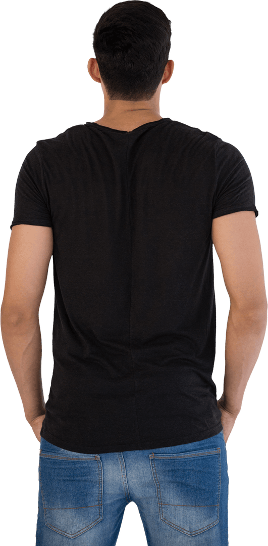 Transparent Rear View of Man Wearing Casual Black T-Shirt and Jeans PNG