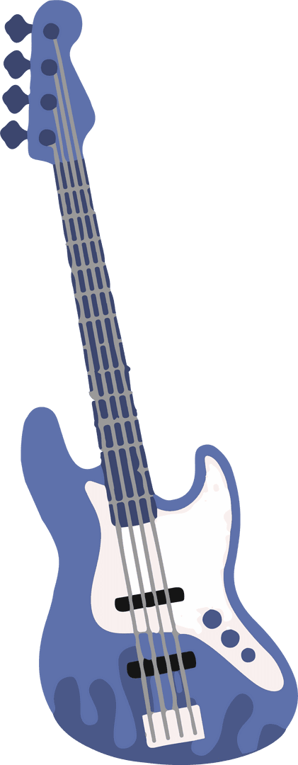 This vector illustration of an electric bass guitar features detailed elements like pickups and knobs against a transparent background, making it ideal for music-related art projects, modern design themes, or educational materials focusing on musical instruments. It's perfect for use in digital prints, website graphics, and music-themed merchandise.