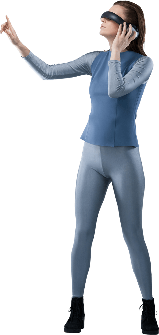 Woman Engaging with Virtual Reality Wearing a Sleek Outfit PNG