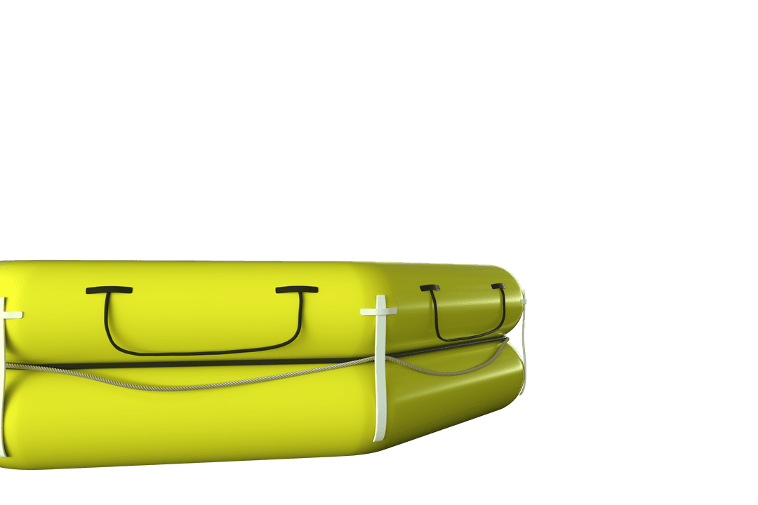 Yellow lifeboat depicted on transparent background, ideal for marine-themed designs, emergency response visuals or sourcing safety equipment stock concepts.