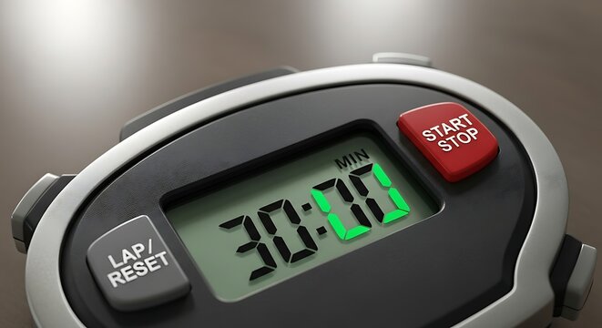 A red digital countdown timer displays 00 30 against a dark smoky and atmospheric background with a glowing floor