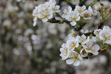 Cherry blossom close up on branch with white flowers 02