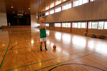 Basketball trainer timing players with stopwatch in court