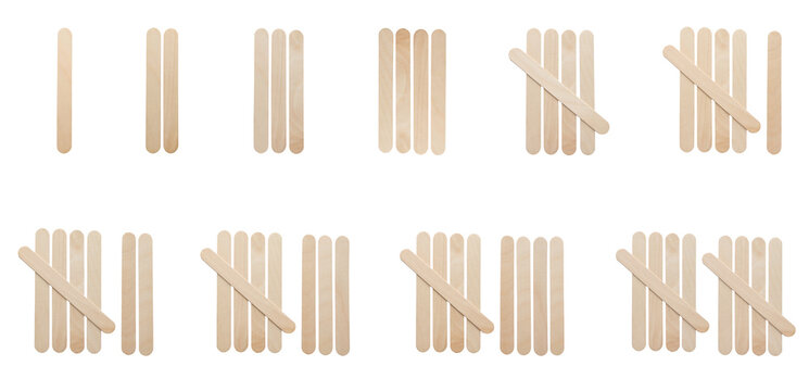 1 to 10 tally marks symbol made from wooden popsicles stick  isolated on white background. Education and learning concept.
