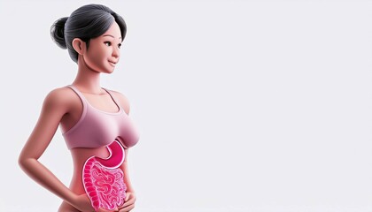 A serene pregnant woman in a soft pink dress and matching hijab cradles her belly, her profile capturing a moment of anticipation. The neutral background enhances her natural glow and tranquility.