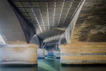 Paris, France - 10 13 2018: The Passy viaduct of Bir-Hakeim bridge and a subway, at sunrise