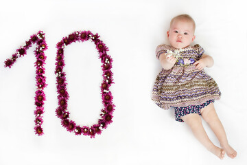 10-month-old baby girl. Baby milestone ten months. Ten-month-old baby