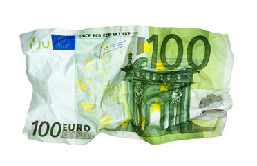 Crumpled 100 euro banknote