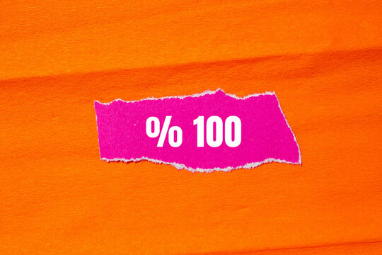 One hundred percent message written on ripped torn paper background. Conceptual One hundred percent symbol. Copy space.