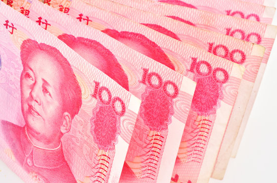 Counting yuan banknotes close up. Renminbi official currency of China.