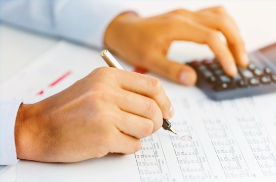 Business man prepare writing a check on