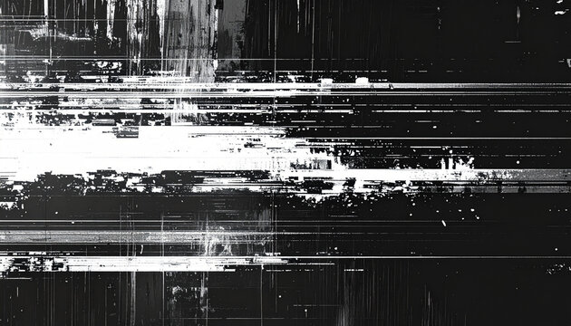 横揺れグリッチが走るモノクロ砂嵐ノイズ – Monochrome TV Static Noise Texture with Glitch Flicker Lines