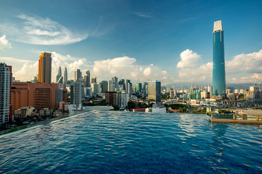 Kuala Lumpur skyline pool view