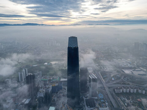 Drone view fog day at TRX Exchange 106 building in overcast morning