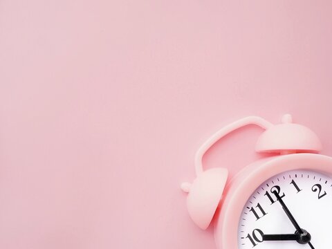 Pink background with alarm clock at 10am 10pm and copy space to add text