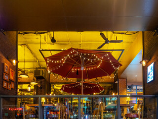 colourful night lights of the street Soi 11 Sukhumvit Rd Nana Bangkok BKK Thailaland. The Thai love to decorate their shops and streets with beautiful colours