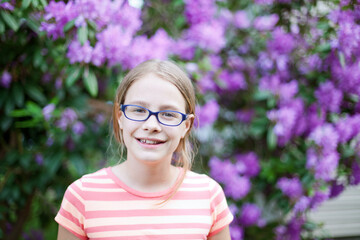 School concept. Little girl 11 or 12 years old in a dress on the background of nature in autumn.