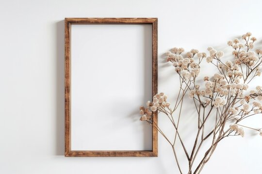 Wooden Frame Mockup on a White Background, Photo Frame Standing Alone