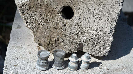 Clay disc flying targets and shotgun bullets on cork background ,Clay Pigeon target