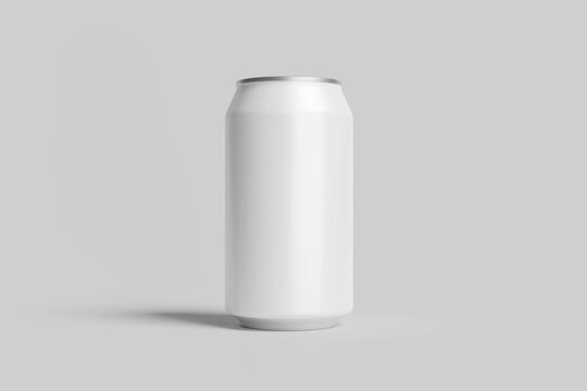 Blank White Aluminum Soda Can Mockup on Minimal Gray Background for Beverage Branding