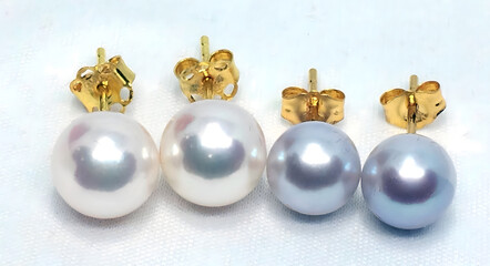 The White and Lavender Pearl Stud Earrings with 14K Gold Settings