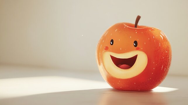 a 2D cartoon illustration of a cheerful apple with a bite taken out, sweet and juicy, white background--ar 16:9