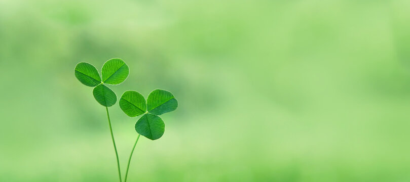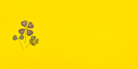 St. Patrick's Day banner. Paper clover leaves on colored background with copy space