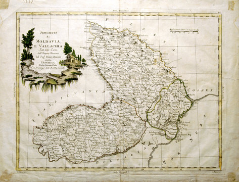 Old map of Moldavia and Vallachia, Moldova and Romania 1700