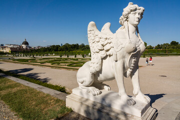 White stone horse statue - Banner desin concept with copy space - Belvedere garden Wien, Europe - Statue built in 1723 approximately