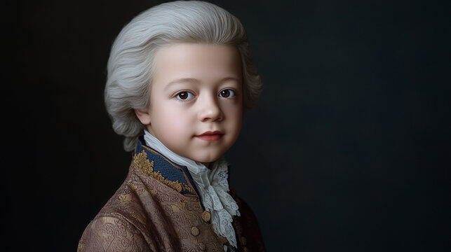 Realistic facial reconstruction of Wolfgang Amadeus Mozart as a child, created using AI and based on the 1763 painting by Pietro Antonio Lorenzoni.