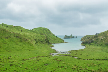 The sheltered Cooks Cove (Opoutama), Tolaga Bay, East Coast, North Island, New Zealand. Captain Cook anchored her in 1769.