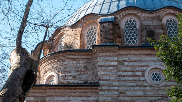 Close up detail of the Zeynep Sultan Mosque. Was built in 1769 by architect Mehmet Tahir Aga for Ahmed III daughter Zeynep Sultan. It evokes Byzantine churches in style. Istanbul, Turkey