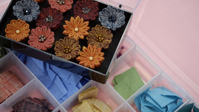 Tsumami Zaiku is a Japanese craft of folding fabric, originated in the 1780s and became popular in the 1900s. Flower brooch.