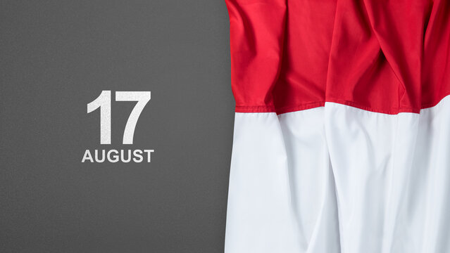 Message of Indonesia Independence Day on 17th August with an Indonesian national flag background. Celebrate Indonesia Independence Day. Concept of Kemerdekaan Indonesia
