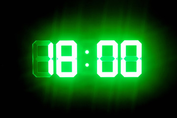 Wall clock showing 6 o'clock sharp. 18:00 . 6:00. Six o'clock