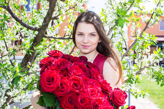 happy girl with flowers in spring