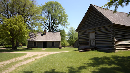 Slow Pull away Brigham Youngs barn shot near frame house for the Smith Family at the Joseph Smith Historical and Origin site for the Church of Jesus Christ of Latter-day Saints in Palmyra, New York.