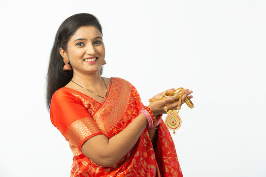 Lady's hands cleaning golden necklace with chemicals in pawnshop or jewelry shop. Customers buy and sell precious metals and jewels.