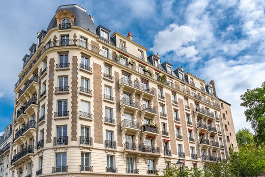 Paris, beautiful building in Montmartre, typical parisian facade avenue Junot