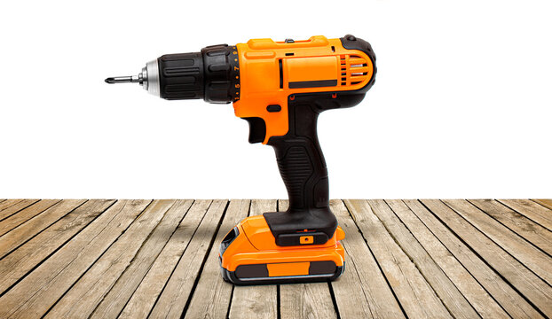 Power drill or Cordless screwdriver with battery for professional work in white background.